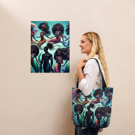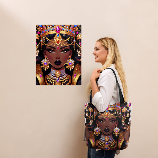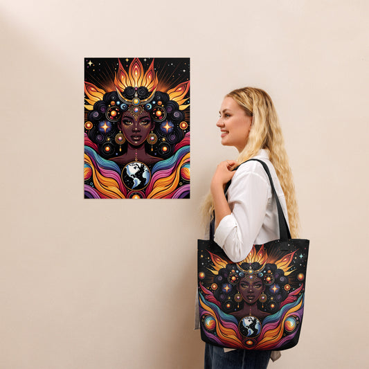 All-Over Print Large Tote Bag Oshun/Goddess with inside pocket